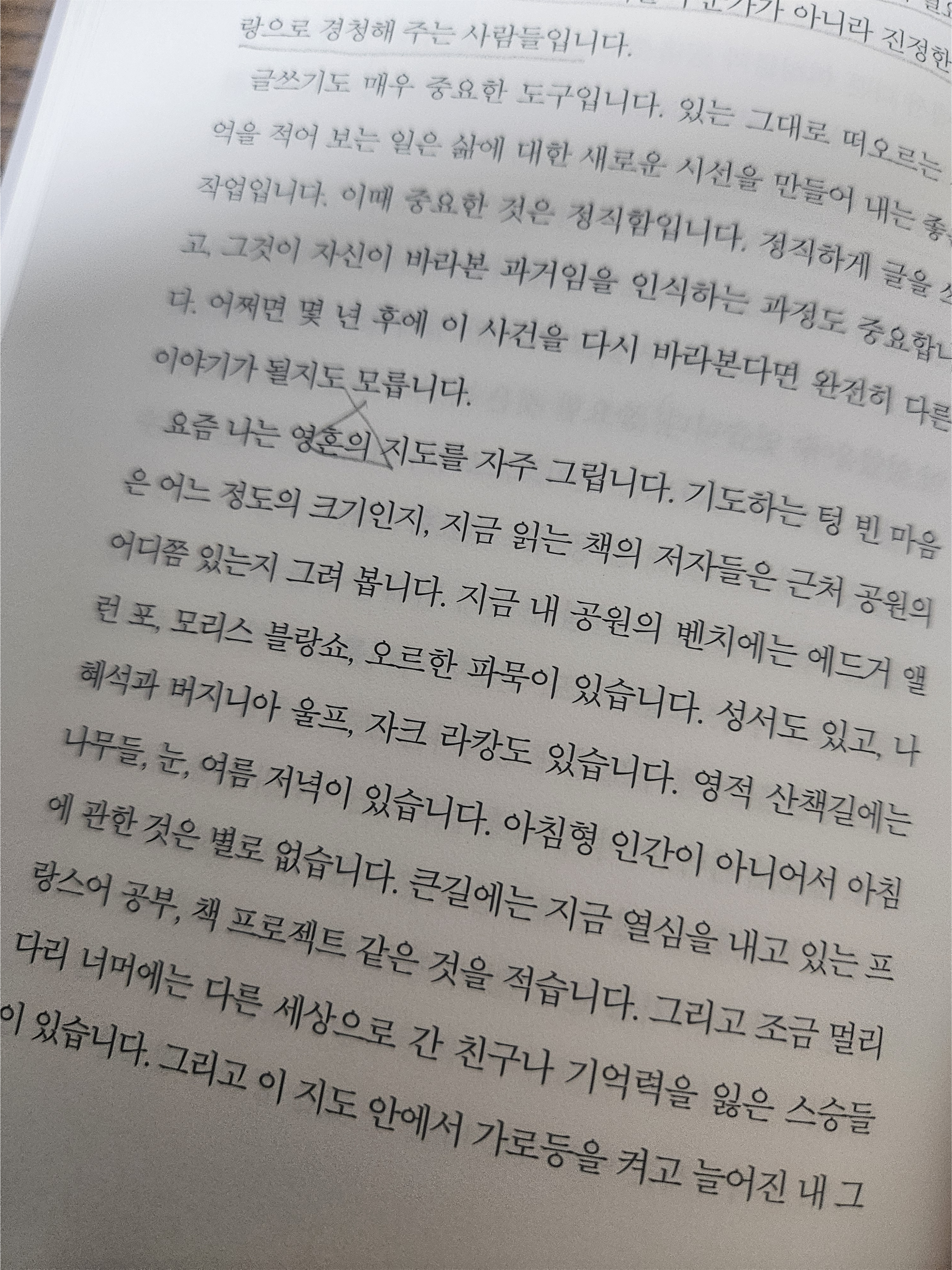 - 이 부분에서 작가님이 그리는 '영혼의 지도'가 인상 깊다. 영혼의 지도 그리기, 유서 쓰기, 정리하기. 책 <여성 영성 수업>을 들으니 나를 돌보고 정리해야 할 부분이 많아진다.