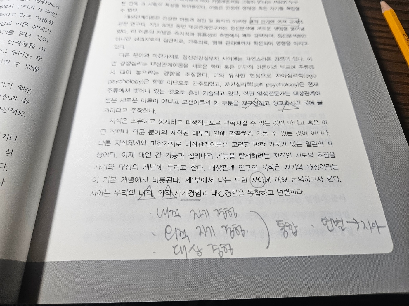 대상관계 이론과 실제-자기와 타자 제1부에 해당하는 내용이다. 큰 제목이 '자기와 대상 및 자아' 그 아래로 4장까지 있다. 제1장 대상, 2장 자기, 3장 자기-대상, 4장 자아. 여기까지의 내용 중 인상 깊은 내용과 생각을 가져왔다.